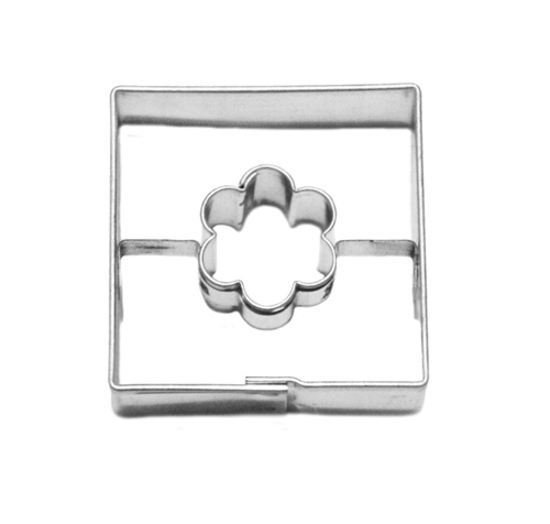 Hladké čtvercové vykrajovátko s kytičkou uprostřed. Ideální společník při přípravě lineckého cukroví.